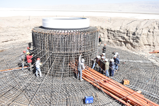 近一個多月來,茫崖風(fēng)電公司以扎實(shí)開展“兩學(xué)一做”學(xué)習(xí)教育為契機(jī),有效發(fā)揮黨員干部的先鋒模范作用,充分調(diào)動各方面積極性和創(chuàng)造性,凝心聚力,戰(zhàn)勝強(qiáng)風(fēng)揚(yáng)沙等惡劣氣候條件帶來的困難,全面統(tǒng)籌協(xié)調(diào)推進(jìn)工程建設(shè)工作,取得重要成果。在完成全部20臺機(jī)組基坑開挖、混凝土墊層澆筑及鋼筋加工制作任務(wù)的同時,其首臺機(jī)組鋼筋混凝土基礎(chǔ)于9月19日晚24點(diǎn)澆筑成型,至10月7日共澆筑6臺機(jī)組基礎(chǔ)。目前,各參建單位正加班加點(diǎn),緊張有序地按計(jì)劃節(jié)點(diǎn)落實(shí)任務(wù),確保在10月底結(jié)束全部土建作業(yè),11月上旬開始塔架和機(jī)組安裝工作。茫崖風(fēng)電公司全體員工決心團(tuán)結(jié)協(xié)作、真抓實(shí)干、攻堅(jiān)克驗(yàn)證,力爭在年內(nèi)實(shí)現(xiàn)首臺機(jī)組并網(wǎng)發(fā)電目標(biāo),為壯大青海水電集團(tuán)新能源業(yè)務(wù),服務(wù)我省綠色經(jīng)濟(jì)發(fā)展大局做出積極貢獻(xiàn)。(文/生國 圖/茫崖風(fēng)電)